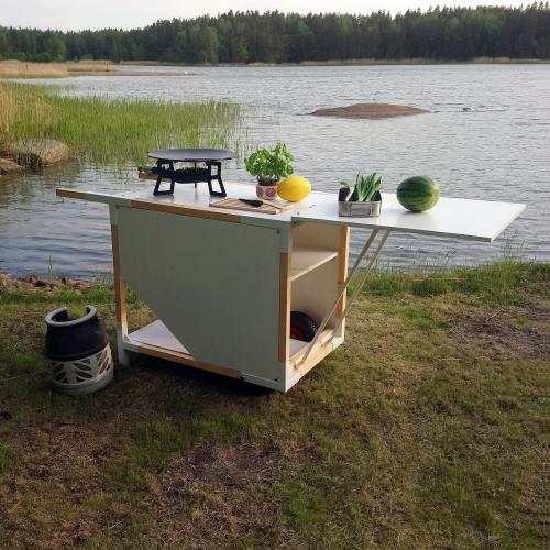 Liikuteltava ruoanlaitto kärry kesämökin tarpeisiin.
