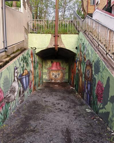 Suomen Kulttuurirahaston apurahalla toteutettu seinämaalaus.